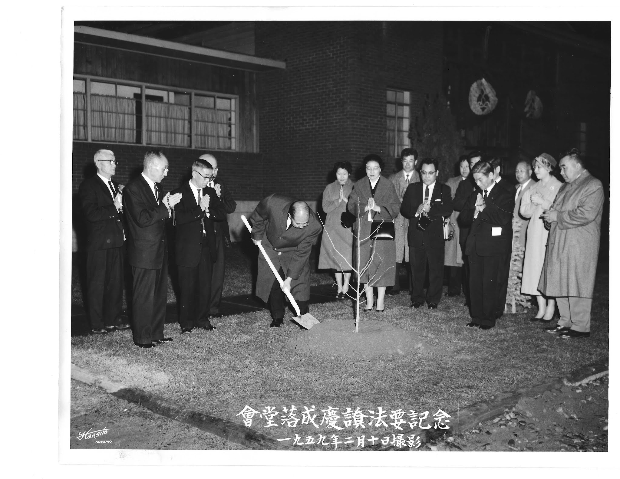 One way that we express our gratitude is by placing our hands together in "gassho" as seen here in this picture taken in 1959 when our beautiful gingko tree was planted by the Gomonshu, the leader of our Jodo Shinshu Buddhist tradition.